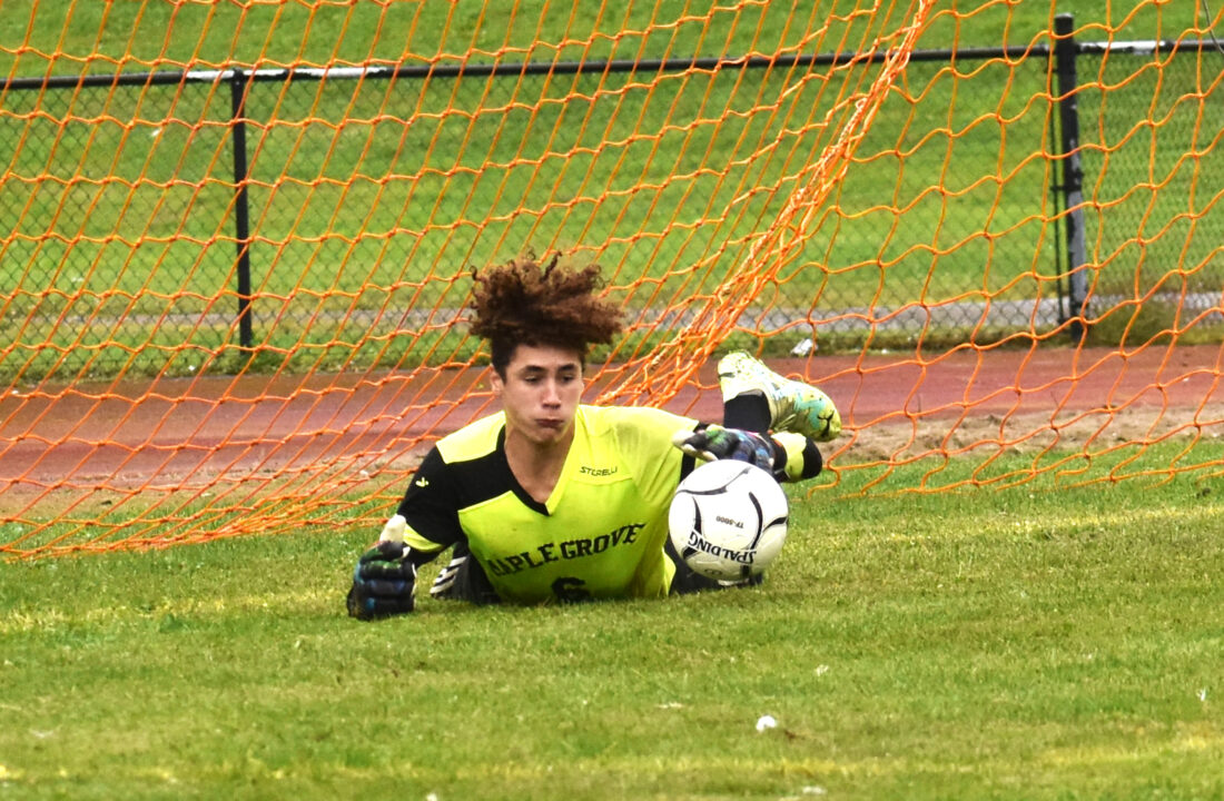 - Maple Grove goalkeeper Nathan Cresanti leaps for a save. P-J photo by Christian Storms