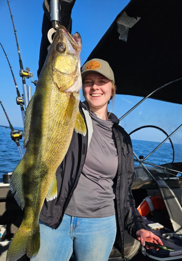 Kelsey Voss with one of several walleye from her limit-catch while fishing Lake Erie near Dunkirk Harbor. Photo courtesy of Forrest Fisher