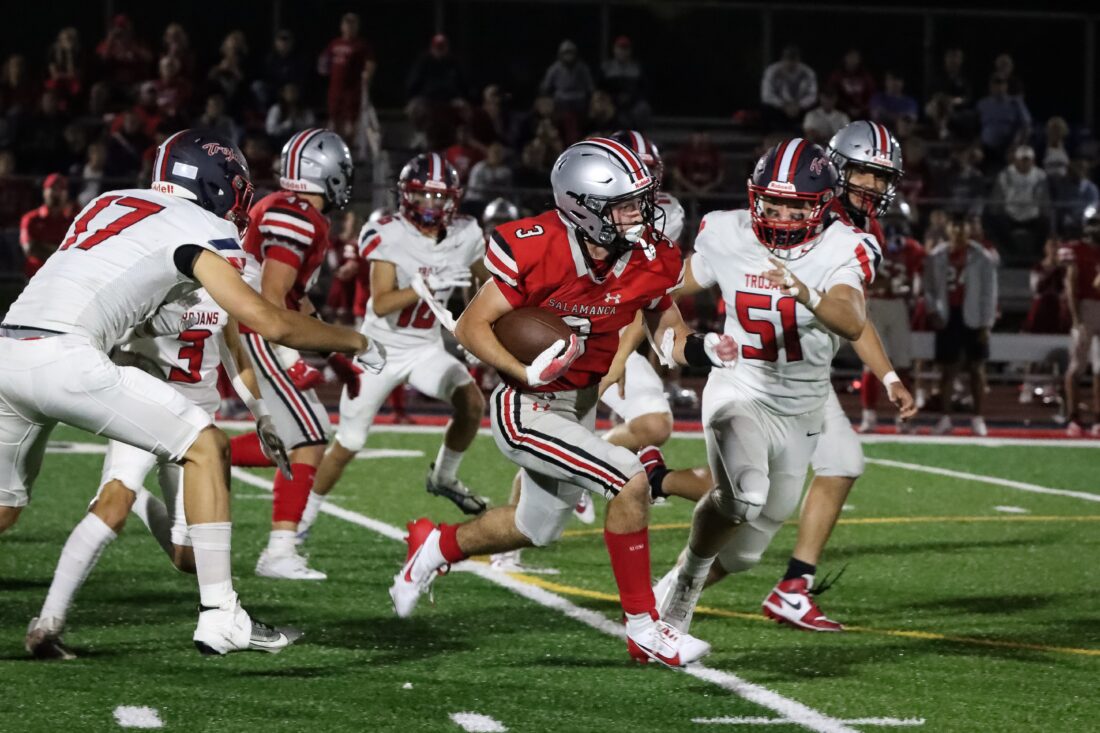 Salamanca had a chance to tack on a touchdown when it drove to the Trojans’ 3 with under 20 seconds remaining in the first half, but Isaac was stripped of the ball and Southwestern recovered to end the threat and the half.