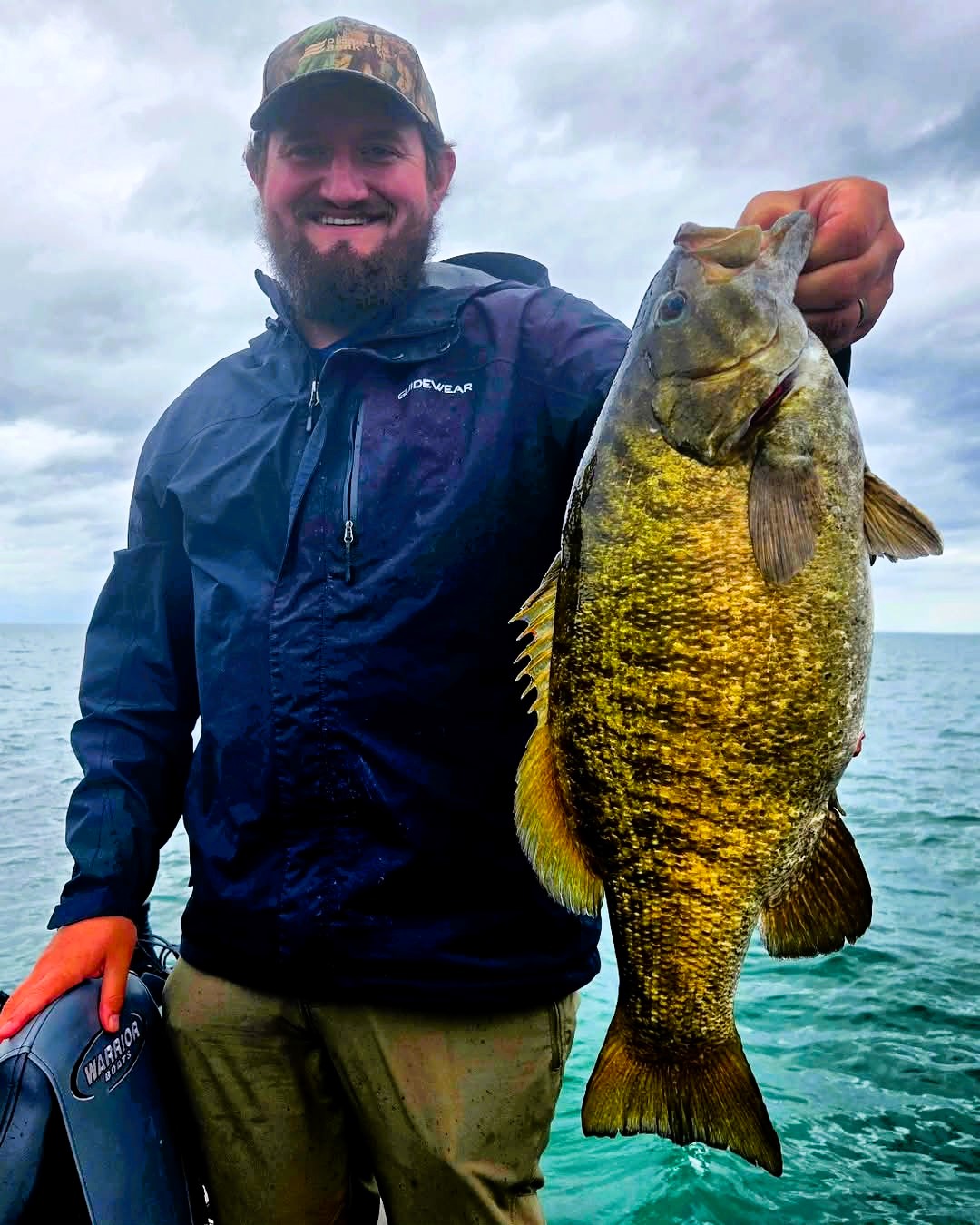 Pic 1 of 2, DO 05162025 – HUGE smallmouth bass, see caption in story. Captain Hans Mann photo.