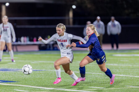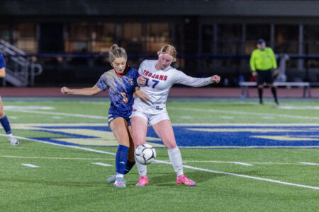 The Golden Cougars’ best look came in the 12th minute when Mary Lundmark made a nearly 50-yard run toward the Southwestern goal, but fired high off the football crossbar behind Trojans senior goalkeeper Braya Beaver, who finished the night with seven saves.