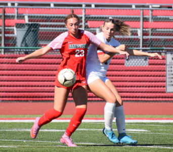 “I think we had a great first half,” Jamestown head coach Jason Kathman stated. “We played tough, we pressured where we wanted the girls to press and it was kind of a mess in the middle third and that’s kind of what we wanted it to be. … I thought our girls played really well against a really good team.”
