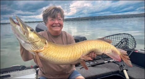 Sonya Kalez with her first-ever musky that she caught fishing with her husband in Chautauqua Lake last week. Photo courtesy of Dennis Young