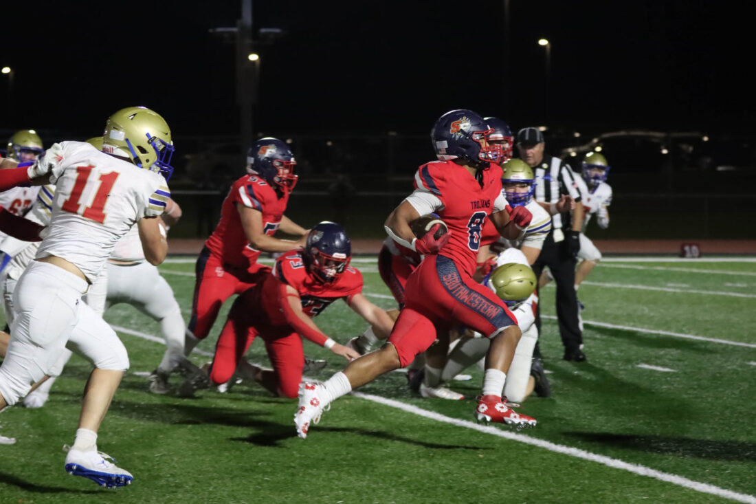 Defensively, Marshall and Zach Markham collected eight tackles, and Roger Markham had a pair of interceptions as the Trojans, who led 28-0 at halftime, posted their fourth shutout of the season. As a team, they’ve allowed only 33 points all season.