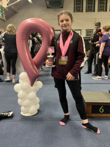 Carolina Brown took first on beam in Level 4 with a score of 8.85. Also also took third in all-around and third on floor.
