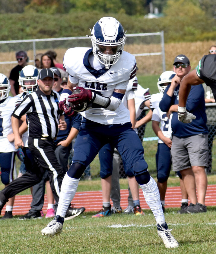 Devin Hewes and the Chautauqua Lake/Westfield/Brocton Eagles dropped to an honorable mention in Class C football after being shutout by No. 6 Southwestern/Frewsburg. P-J photo by Matt Spielman