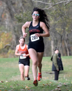 Jamestown finished second as a team with 61 points. The Red & Green’s five scorers were: third-place Finn Caswell (16:43.01), fourth-place Wyatt Olmstead (16:43.34), sixth-place Thomas Kathman (16:48.66), 28th-place Caleb Johnson (18:26.58) and 33rd-place Hudson Himes (18:43.27).