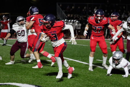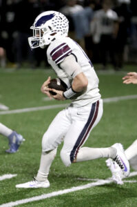 - Eagles running back Thandon Bensink looks for room to run during Friday’s Class C semifinal. Photo courtesy of Cody Jacobson