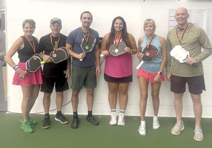 - Pictured are Mixed 3.5-4.0 winners: Meredith Sheesley and Jeremy Scarsone, first place; Sean Oleary and Christine Boniface, second place; and Kim Witherow and Ken Schuh, third place. Submitted photo