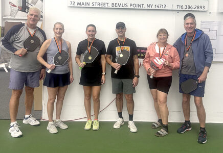 - Pictured are Men’s 4.0+ winners: Jon Cable and Steve Bittinger, first place; Phil Gernovich and Don Mosher, second place; and Randy Rinke and Kelly Manning, third place. Submitted photo