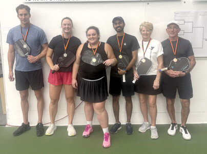 - Pictured are Mixed 3.0-3.5 winners: Alexa Brightman and Tarun Verraraghavan, first place; Megan Wuebolt and Mike Montecalvo, second place; and Joe Paterniti and Ann Knepshield, third place. Submitted photo
