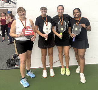 - Pictured are Women’s 4.0+ winners: Jane Brueckl and Marlene Sandberg, first place; Jessie Sanford and Vee Barringer, second place; and Michele Ognibene and Sherry Elchynski, third place. Submitted photo