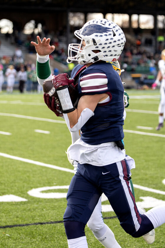 Devin Hewes catches a 30-yard pass down the sideline. Photo courtesy of Cody Jacobson