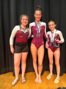 Pictured, from left, are: Allie Arnone, Molly Colburn and Izzibella Ordines. Arnone and Ordines competed at Level 6 while Colburn competed at Level 7 during the Meadville Twisters’ Turkey Tumble Invitational in Saegertown, Pa. Submitted photo