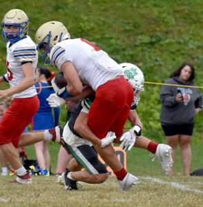 Aiden Woodis, a sophomore, was named a Class C South Second-Team All-Star. … Was in on 31 tackles, defended three passes and intercepted five, returning one for a touchdown. … Also caught three passes for 33 yards and a touchdown, and returned 11 kickoffs for 230 yards.