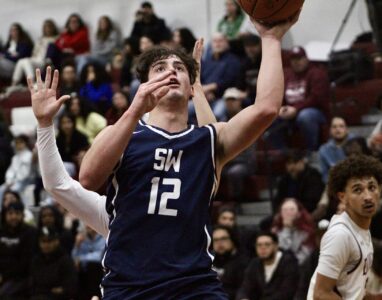 Then, with 4:45 left in the first half, Markham hit a floater in the lane for the Trojans’ first lead since the opening bucket of the contest. Tell responded with a layup off the glass for a 23-22 lead, which prompted a Southwestern timeout with 4:16 left in the half. After a Dunkirk layup, Colton Waite fired up the Southwestern bench with a slam dunk to pull back within a point. Dunkirk extended its lead to five points, 29-24, entering the break.