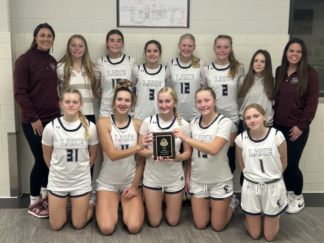 - The Chautauqua Lake girls basketball team poses for a photo after winning the Tip-Off at the Lake Tournament on Saturday at Chautauqua Lake. Submitted photo