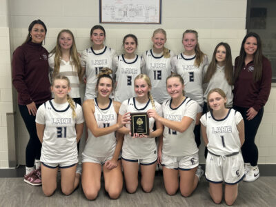 The Chautauqua Lake girls basketball team poses for a photo after winning the Tip-Off at the Lake Tournament on Saturday at Chautauqua Lake. Submitted photo