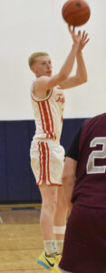 - Southwestern’s Landon Hooks shoots from deep during the championship game of the Southwestern Holiday Tournament on Saturday at Southwestern High School. P-J photo by Scott Kindberg