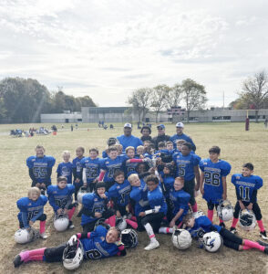The South Side junior varsity (5-1-1) celebrates after edging North Side 6-0 in the Jamestown Area Midget Football League championship game.