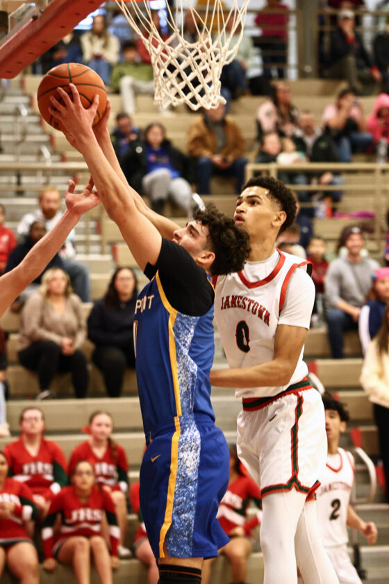 Shadowing Croff at every opportunity, Farmer’s length forced the former to take contested shots, and the teams headed to the final period with Jamestown leading 41-38.