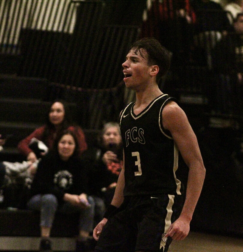 - Falconer’s D’Mitri Carlson shouts after hitting a 3-pointer during the third quarter of Friday’s nonleague boys basketball game against Silver Creek. P-J photo by Braden Carmen