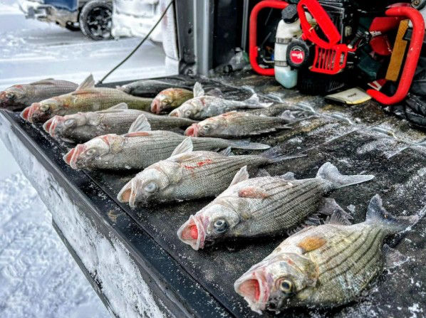 Ice anglers face a familiar decision: pack it in or stay put and hope something exciting happens. Often, especially this year for reasons unknown, that excitement arrives in the form of freshwater white bass.