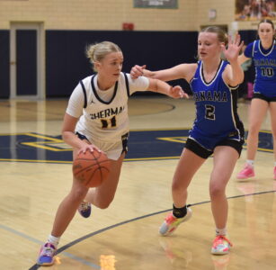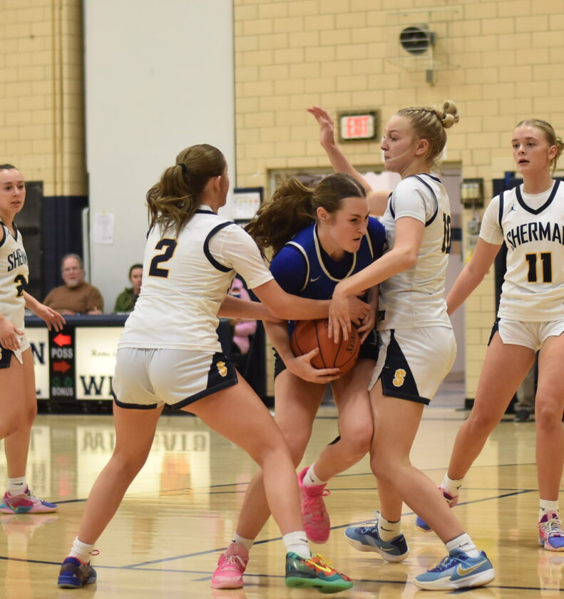 While tasked with much of the defensive coverage against Loberg, Sherman’s Emmersen Crawford still managed a double-double of her own with 17 points, 10 rebounds and three assists. Baya Oehlbeck added 11 points and six rebounds, Bria Palmatier had six boards and Carlie Gable grabbed five.