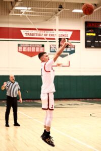 Possessing consistent talents at both ends of the court, Gonzalez showcased his 3-point shooting against the Red Devils, connecting on 6 of 10 shots from beyond the arc, including three straight during a 14-2 Jamestown run to end the third quarter. Armed with a 49-18 lead, Miley could give his starters the rest of the night off.