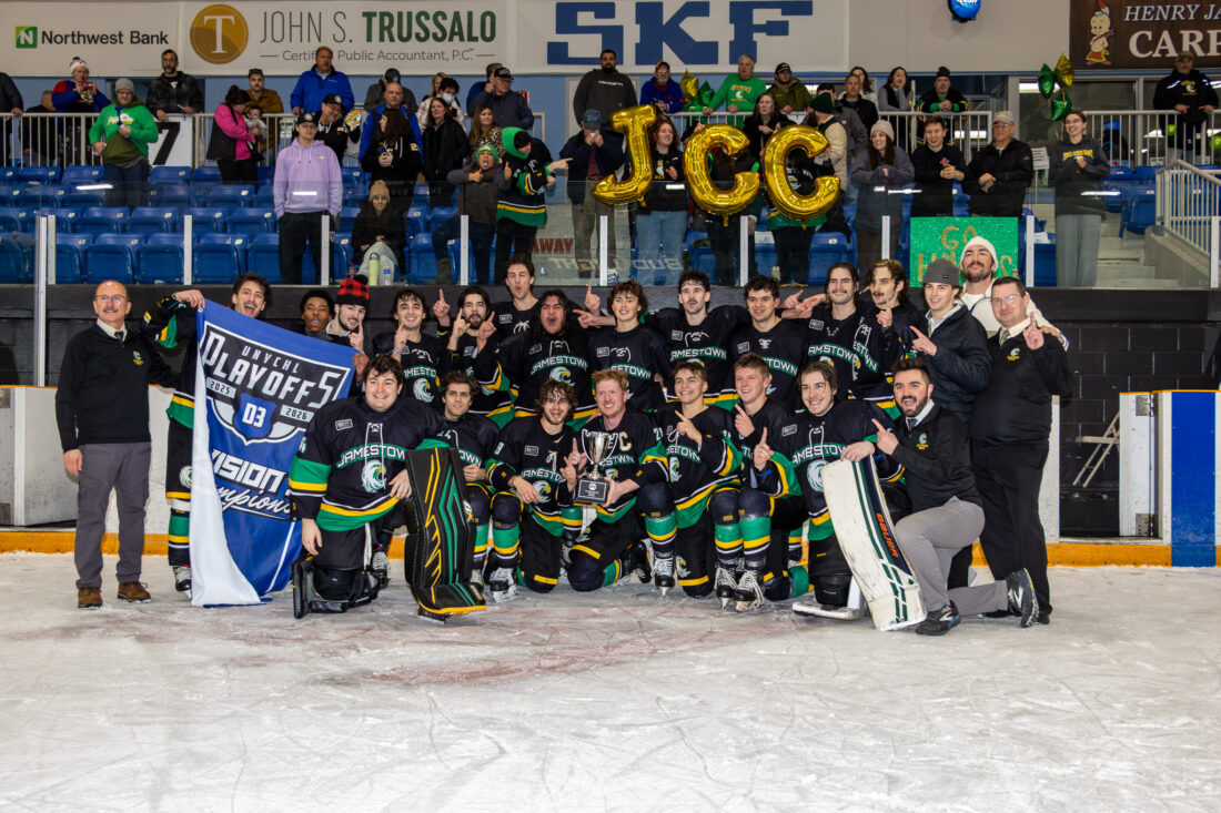 “The Canisius game was 1-1 after the first period, they tied the game with .5 seconds left in the first period. We went up 3-1 after two periods and they made it 3-2 early in the third period, but then we took over from there,” Jamestown CC head coach Tommy Gerace said Tuesday morning. “We scored four unanswered goals. For the championship game, it by far, was the most complete game that our team played throughout the season.