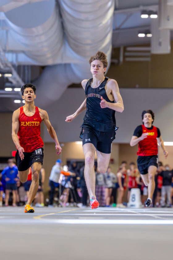 Jamestown’s Beckett Lumia runs to a victory in the 300 meters during Section VI’s Varsity Select No. 4 on Saturday at Houghton University’s Kerr-Pegula Field House. P-J photo by Tim Frank
