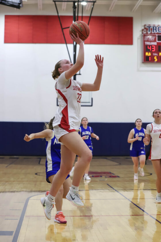 Those practice discussions played out against Alden (12-10) in a big way as everybody on the Southwestern roster made a contribution, headlined by two eighth-graders and a sophomore. Tenth-grader Charlotte Beaver scored 24 points, grabbed 11 rebounds and had three steals; eighth-grader Gianna Sirianni had 23 points, six boards and three assists; and eighth-grader Jada Edwards had 13 points, 10 steals, seven blocks, four assists and three rebounds. For good measure, junior Marlana Cresanti collected 8 points and 10 steals, and senior Braya Beaver grabbed eight boards.
