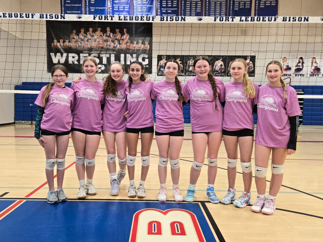 The Cheetah West 15-and-under team competed in an eight-team volleyball tournament at Fort LeBoeuf (Pa.) High School, finishing first in their its by beating PO1NT, Octane Rebels and Corry. Cheetah West advanced to the gold bracket where it defeated Flash 25-11, 25-11 in the semifinals and then knocked off Fort LeBoeuf 25-16, 25-15 in the finals.