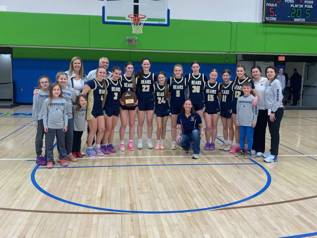 The Frewsburg Bears pose with the Far West Regional plaque after beating Keshequa in the NYSPHSAA Class C quarterfinal Saturday at Finger Lakes Community College. Submitted photo