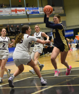 - Frewsburg’s Presleigh Stelmack puts up a jumper during Friday’s NYSPHSAA Class C semifinal against Delaware Academy at Hudson Valley Community College in Troy. P-J photo by Matt Spielman