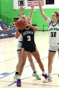 After a foul shot from Notre Dame’s Penny Jo Thompson, Sherman’s Ava-Kay Irwin sank her only 3-pointer of the game to make it a one-point game.