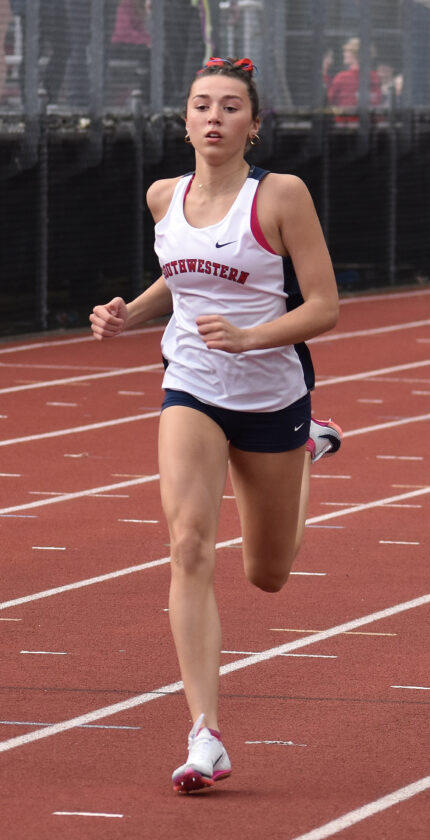 - Southwestern’s Marlana Cresanti nears the finish line en route to winning the 400 meters. P-J photo by Scott Kindberg