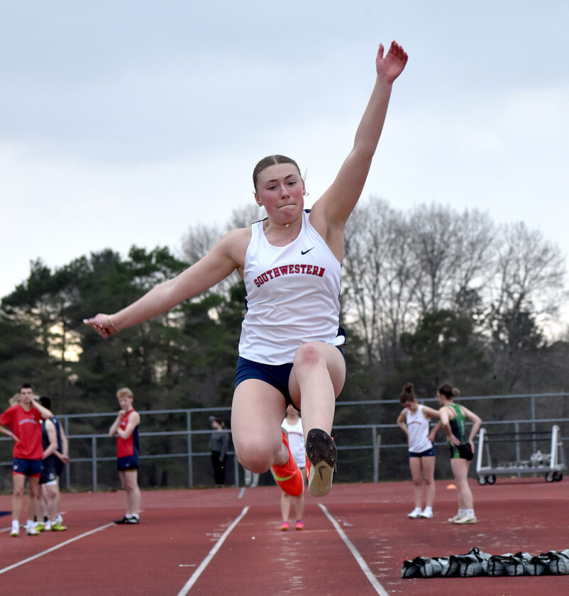- Southwestern’s Katie Bishop competes in long jump. P-J photo by Matt Spielman