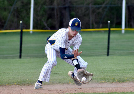 - Falconer second baseman Chase Bianco fields a groundball during Tuesday’s Chautauqua-Cattaraugus Athletic Association Division 3 baseball game at Denny Meszaros Field. P-J photo by Matt Spielman