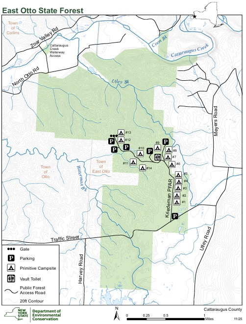 View the updated map and information on the NYSDEC East Otto State Forest webpage at https://dec.ny.gov/places/east-otto-state-forest. For specific questions, contact the DEC Region 9 Allegany Office (Monday-Friday, 8 a.m. to 4 p.m.), 716-372-0645, or email region9@dec.ny.gov.