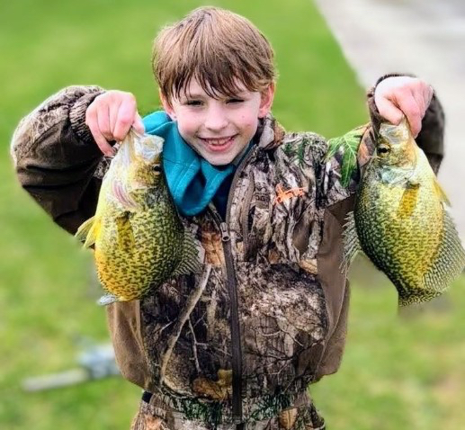 - Fishing with his dad on a quiet Chautauqua Lake canal, Colton Kubiak used a small white jig with a green soft plastic tail to bring in a bucketful of pan-size crappies after the rainstorm. Photo courtesy of Bob Kubiak