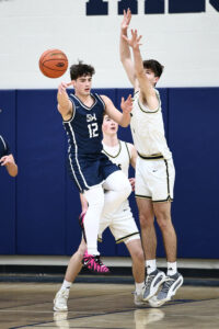 St. Bonaventure University introduced Mike MacDonald, second from right, as its new men’s basketball coach on Wednesday at the Reilly Center. Joining him in the photo above are, from the left, Bob Beretta, St. Bonaventure athletic director; Maura MacDonald, Mike’s wife; Dr. Jeff Gingerich, university president. MacDonald’s previous coaching stops were at Canisius University, Medaille University and, for the last 12 seasons, Daemen University where he posted a 61-3 record the last two campaigns, including a trip to the Elite Eight this year. A 1988 St. Bonaventure graduate, MacDonald is the only coach in college basketball history with 100 wins at the Division I, II and III levels. He replaces Mark Schmidt, the winningest coach in school history.