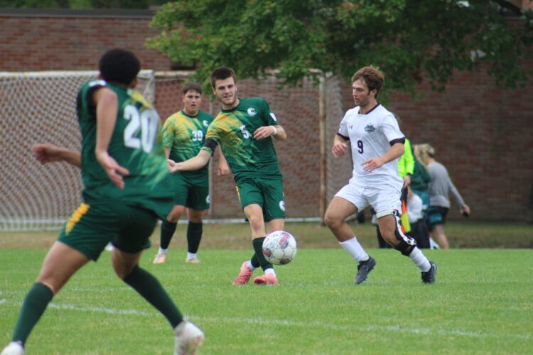 The Jamestown Community College men's soccer team moved to a perfect 3-0 in Region 3 play, with a 3-0 home win over North Country CC on Saturday afternoon.