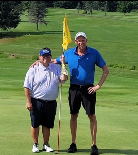 Mike Peters, left, and Marty Bauerlein, right, edged the pair of Anthony and Adam Gullo by a stroke to win the three-day Member-Guest Championship at South Hills Country Club with a total score of 194. The Gullo duo won Flight 1 with 195, Flight 2 was claimed by Pat MacIntyre and Adam Mason ...