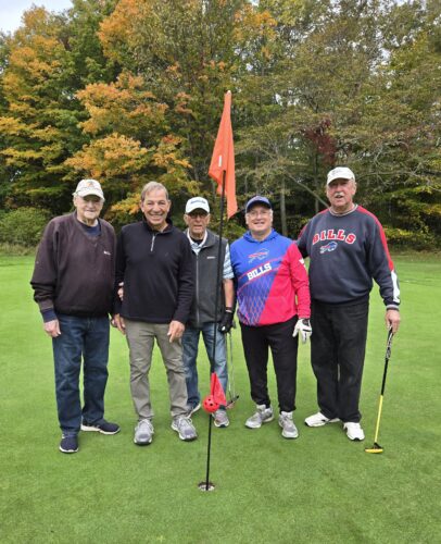 Sam Allesi, second from left, made an ace on the 120-yard par 3 No. 5 at Vineyards Golf Course on October 5. Sam used a pitching wedge and the shot was witnessed by Bill Hart, Tony Destro, Dave Criscione and John Lakas.