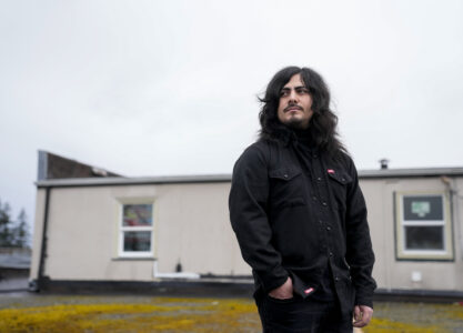 Santos Enrique Camara, who dropped out of Shoreline Community College at age 19 in 2015 after completing two semesters studying audio engineering, poses for a portrait outside his home Friday, March 24, 2023, in Marysville, Wash. Camara, now 27, had difficulty paying tuition and finding time to do schoolwork while caring for his younger sister. “I seriously tried,” he said. “I gave it my all.” For now, Camara is happy working as a sous-chef and cook at a local restaurant while planning a tour with one of his two bands.