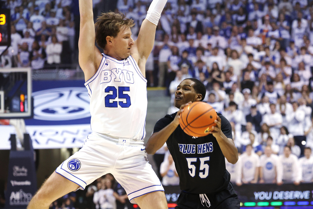 BYU chipped away at the deficit and initially cut it to four on consecutive layups from Dybantsa and Wright. The Blue Hens answered with an 8-0 run bookended by 3-pointers from Tyler Houser and Bliss to extend their lead to 27-15.